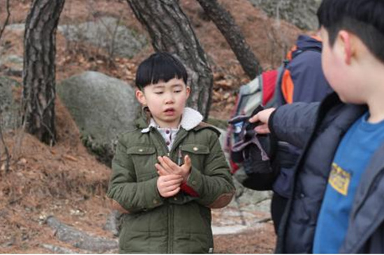 바위에 오르고 나서 미르는 또 무섭다고 정상을 가지 않는다고 한다. 하는 수 없이 미르를 데리고 시산제 하는 장소로 이동했는데 한결이도 아빠 없이 혼자 가긴 그랬는지 같이 시산제 장소로 갔다.