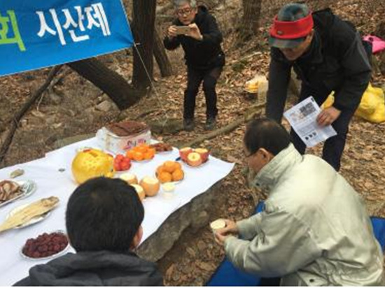 모두가 도착한 후에 올 한해를 잘 보내게 해달라는 시산제를 지냈다. 모두들 산에 잘 다녀서 통일에 대한 신심이 튼실해졌으면 좋겠다.