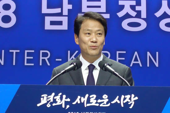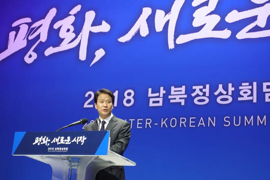 ‘2018 남북정상회담 준비위원장’인 임종석 대통령 비서실장은 회담을 하루 앞둔 26일 오전 11시 고양 킨텍스 메인프레스센터에서 브리핑을 갖고 회담 전반 사항에 대해 발표했다.