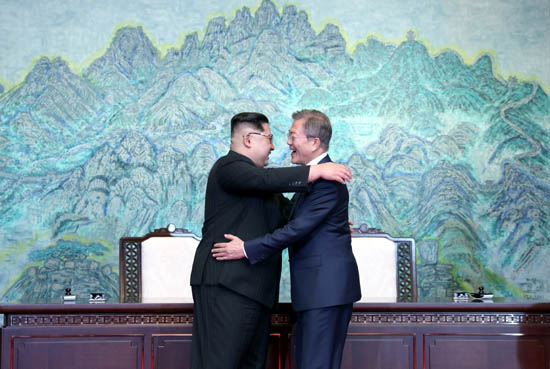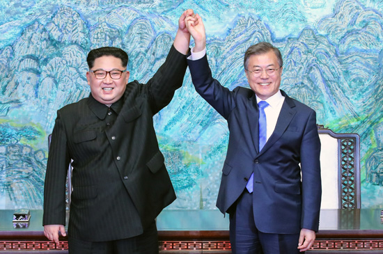 문재인 대통령과 김정은 북한 국무위원장은 27일 판문점 남쪽 평화의집에서 역사적인 회담을 갖고 ‘한반도의 평화와 번영, 통일을 위한 판문점 선언’에 서명한 뒤 온 세계가 지켜보는 가운데 나란히 발언대에 서 이같이 말했다. 분단의 아픔을 넘어 평화를 일구자는 우리 겨레와 민족 앞의 다짐이자 선언이다.