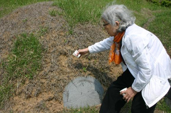 삼남매가 구 빨치산 남편 가묘에 술을 따르다