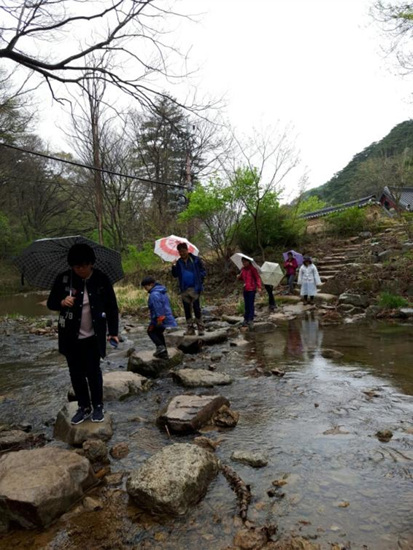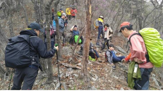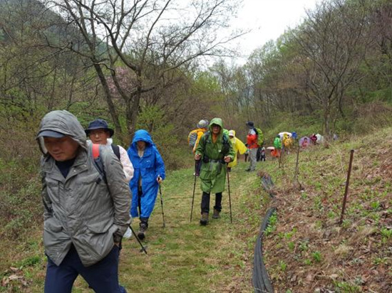 어느덧 계절이 네번 바뀌어 1년이 지났다. 작년 4월 9일 19명이 고기리에서 출발하여 약 305Km의 산길을 걸어 여기까지 왔다. 그만큼 산행 실력도 늘고 우정도 두터워졌다. 지리산 천왕봉에도 올랐고, 장쾌한 덕유산과 구름도 쉬어간다는 추풍령도 지나 속리산 천왕봉 앞자락까지 왔다. 1년 사이 초등생들의 키도 훌쩍 자라 가빈이는 엄마와 키가 비슷해졌다.