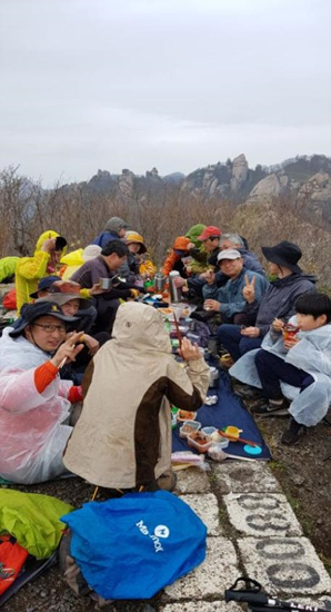 문장대에서 휴식을 취한 후 5시경 하산을 서두른다. 예정보다 시간이 많이 지체되어 날머리에서 있는 식당에서 둘레길 팀원들이 기다리고 있다. 6시 30분경 회북분소에 모두 하산하여 즐거운 뒤풀이 식당으로 향했다.