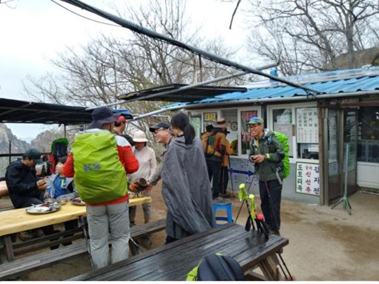 입석대를 조금 지나니 신선대휴게소가 나타난다. 시간은 조금 지체되었어도 백두대간 마루금에 있는 유일한 휴게소인 이곳에서 신선주를 안 먹고 갈 수는 없다.