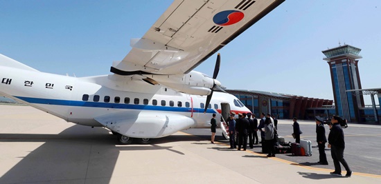 이날 낮 12시 30분 성남공항을 이륙한 정부수송기(VCN-235)는 오후 2시 48분 원산 갈마비행장에 착륙했다. 정부 소속으로 공군이 관리하는 수송기가 방북한 것은 처음이다. 조종사 2명과 정비사 4명 모두 공군 소속인 것으로 알려졌다.