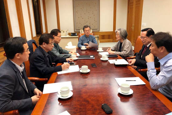 앞서, 문재인 대통령은 트럼프 대통령의 북미회담 취소 소식을 접하자 24일 밤 11시30분 임종석 비서실장, 정의용 안보실장, 강경화 외교부장관, 조명균 통일부장관, 송영무 국방부장관, 서훈 국정원장, 윤영찬 국민소통수석을 청와대 관저로 긴급 소집했다.