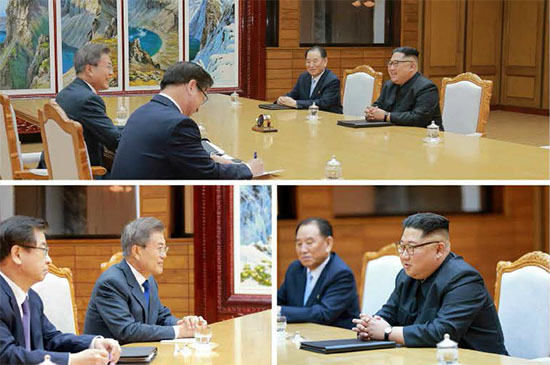 아울러 “북과 남의 최고수뇌분들께서 격식과 틀이 없이 마음을 터놓고 중대한 현안문제들에 대하여 서로의 견해를 청취하고 솔직한 대화를 나누신 이번 상봉은 북남관계발전에서 새로운 장을 열어놓는 또 하나의 력사적인 계기로 된다”고 평가하고 서훈 국정원장과 김영철 노동당 중앙위원회 부위원장이 배석했다고 전했다.