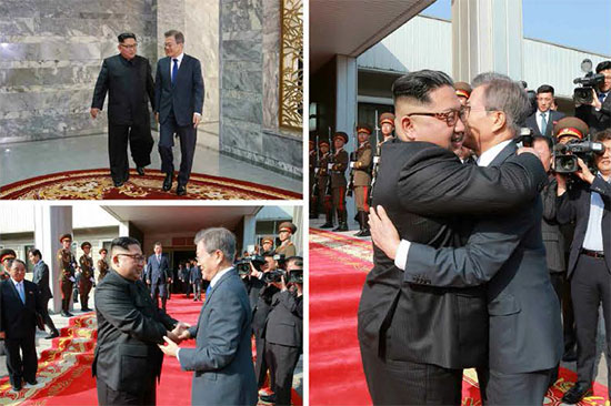 통신은 “최고령도자동지께서는 조미관계개선과 조선반도의 항구적이며 공고한 평화체제구축을 위하여 앞으로도 적극 협력해나가자고 말씀하시였다”며 “경애하는 최고령도자동지께서는 문재인대통령과 뜨겁게 포옹하시고 다시 만날 날을 약속하시며 작별인사를 나누시였다”고 보도했다.