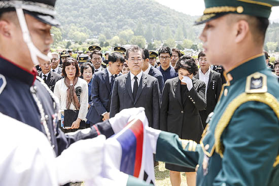 문 대통령은 현충일 추념식에 이어 순직소방공무원 추모식에 참석해 가족들에게 국가의 상징인 태극기를 전달함으로써 국가가 국민을 위해 희생하신 모든 국가유공자들을 보답하고 책임지겠다는 뜻을 밝혔다.