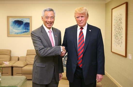 ‘6.12 북미정상회담’ 참석차 10일 밤 싱가포르에 도착한 도널드 트럼프 미국 대통령이 11일 오전 리센룽 싱가포르 총리와 회담한다.