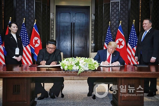 그리고 북미 정상은 공동성명에 서명했다. ‘완전한 비핵화’와 ‘안전보장 제공’이 명시됐다.