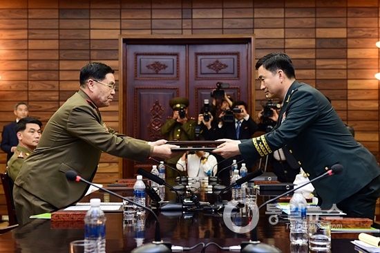 남북은 14일 판문점 북측지역 통일각에서 남북 장성급 군사회담을 열고, 공동보도문을 채택했다.