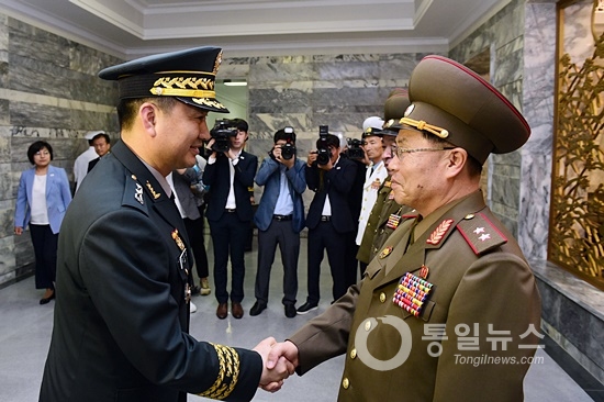 이에 북측 안익산 단장은 “‘판문점선언’ 이행 의지를 확인했다. 다음 회담에서는 조선반도에서의 군사적 긴장상태를 완화하고 전쟁 위험을 해소하기 위한 적극적이며 실체적인 결과물을 내놓을 것이라고 기대했다”고 화답했다.