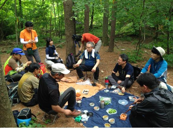 각자 준비한 소박한 점심과 빠질 수 없는 메뉴 곡차로 웃음꽃을 피우면 망중한을 즐긴다. 이번 산행이후 9월말까지는 맛볼 수 없을 것이라는 이지련 단장의 김밥은 언제나처럼 별미였다.