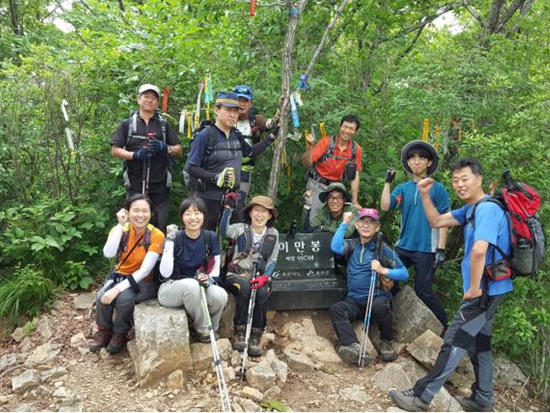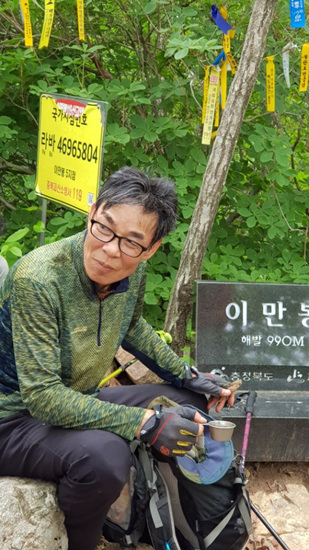 언제나처럼 점심식사 이후에는 속도가 뚝 떨어지려나? 생각하며 발걸음을 옮겨 걷는다. 그러나 이번에는 내 생각이 틀린 듯하다. 고도의 변화가 완만해서일까? 평소 식사 후보다 훨씬 빠르다고들 한다. 이만봉에 도착하여 잠깐 쉬는 시간에도 항상 곡차는 우리에게 즐거움을 선물하며, 오랜만에 접하는 쥐치포는 또 다른 대화거리를 제공해 준다.