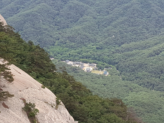 우리 ‘통일뉴스 백두대간 종주대’는 희양산 정상에서 봉암사를 바라보며 이계환 대원이 준비해 주신 1.7리터의 막걸리와 강남순 대원께서 준비해 주신 골뱅이(이번엔 갑오징어 아님)를 안주로 시원하게 목을 축이니 신선(神仙)이 따로 없고, 직벽을 오르면서 힘들었던 여독이 확 풀어지는 느낌, 아무나 느낄 수 없는 짜릿함이었다. (장소영 대원은 이곳에서 마신 막걸리 한 잔이 아직도 그리울 것 같은데... 아닐까?)