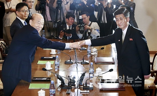 이날 회담 남북 수석대표(단장)들은 모두발언에서 화기애애하게 덕담을 주고받았다. 회담장에 남북 수석대표들이 손을 잡고 입장하는 모습도 연출됐다.