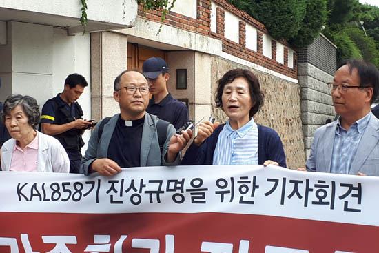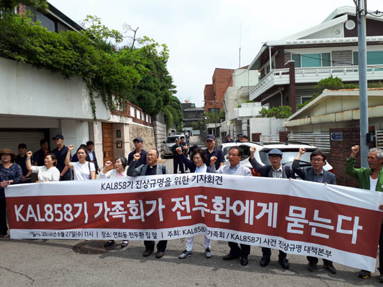 1987년 13대 대통령 선거를 앞두고 발생한 KAL858기 사건의 진상규명을 촉구하고 있는 ‘KAL858기 가족회’와 ‘KAL858기 사건 진상규명 대책본부’는 27일 오전 11시 전두환 전 대통령 집 앞에서 기자회견을 갖고 그를 ‘주범’으로 지목했다.