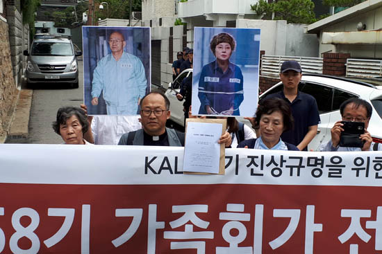 김호순 가족회 회장은 “31년 동안 우리들은 진상규명을 위해서 지금까지 살고 있다”며 최근 대한항공 일가족의 ‘갑질’을 거론하며 “조종사들이 아무런 위급신호 하나 못 보낸 것은 그 비행기 안에 전두환이 기획해 가지고 폭탄은 이미 있었다는 거다”고 전두환 정권과 대한항공의 공모 의혹을 제기했다.