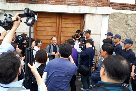 기자회견을 마치고 신성국 신부와 김호순 회장, 차옥정 부회장은 전두환 집 대문 앞으로 이동해 기자회견문과 입장문을 전달하려 했지만 초인종을 눌러도 인기척을 보이지 않았다. “전두환은 거짓말을 멈추고 ‘무지개 공작’ 진실을 밝혀라” 제목의 입장문은 『전두환 회고록』을 조목조목 비판한 내용이다.