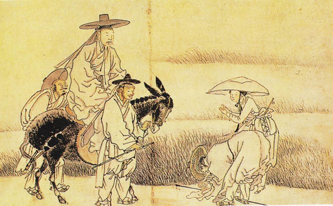 따라서 나귀를 탄 사람은 마부를 두고 아전의 수행을 받는 지역 수령일 가능성이 높다.