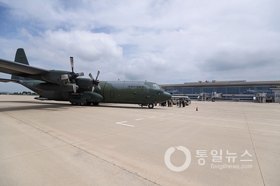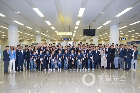 조명균 통일부 장관을 단장으로 한 남북통일농구경기 방북단 101명을 태운 공군 수송기 C130H는 이날 오전 11시 10분 평양국제공항에 도착했다. 성남 서울공항을 출발한 지 70분 만이다.