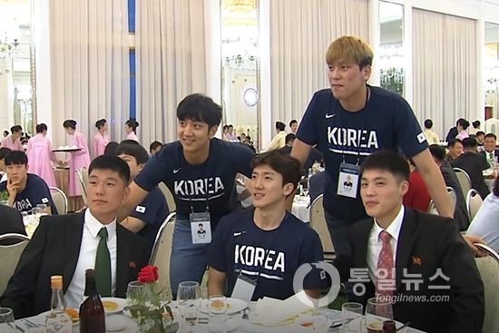 이날 환영연회 테이블에는 북한식 한정식과 함께 옥류관 냉면이 올랐으며, 남측에서는 조명균 장관, 노태강 문화체육관광부 차관, 이기흥 대한체육회장 등과 함께 농구 선수단이 자리했다.