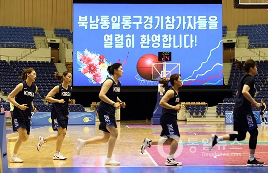 이를 반영하듯, 남측 여자 농구선수들은 이날 오전 평양에 도착한 뒤 곧바로 남북통일농구경기가 열리는 류경정주영체육관으로 이동해 연습을 했다.