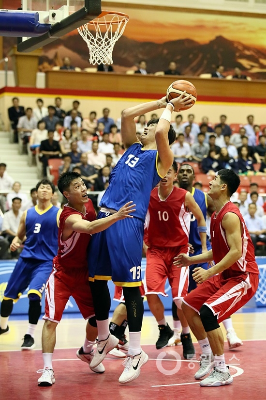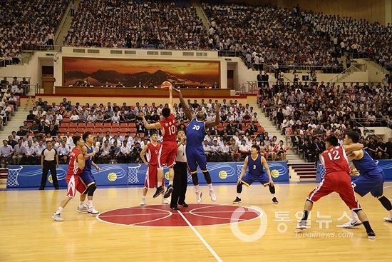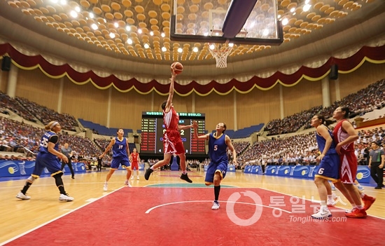 ▲ 남북통일농구경기가 5일 오후 평양 류경정주영체육관에서 열렸다. 남자경기 장면. [사진-평양 사진공동취재단]