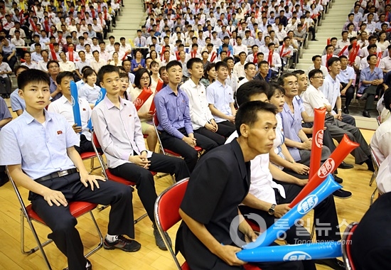 ▲ 평양시민들이 농구경기를 관람하고 있다. [사진-평양 사진공동취재단]