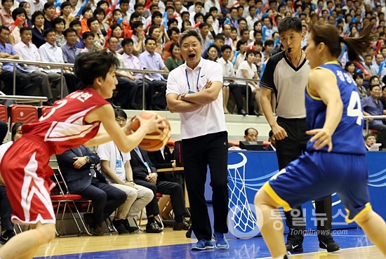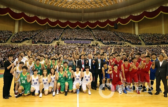 남북통일농구경기 마지막 경기를 사진으로 모았다.
