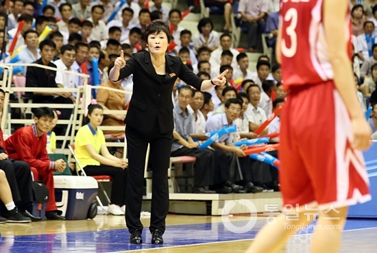▲ 홍팀 정성심 감독의 지시. [사진-평양 사진공동취재단]