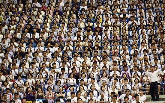 ▲ 평양 류경정주영체육관은 1만 2천 석이 꽉 찼다. [사진-평양 사진공동취재단]