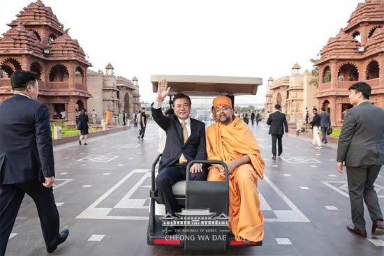 문 대통령은 “평화의 소중함을 너무나 잘 아는 인도와 함께 한반도를 포함한 역내 평화 증진을 위해 긴밀히 협력해 나가길 기대한다”고 밝혔다.