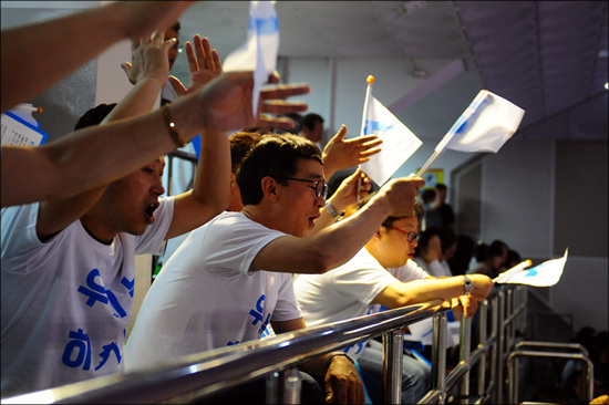 이날 응원전에는 부산에서 온 응원단도 합세했다. 서울에서도 20여 명의 응원단이 다녀갔다.