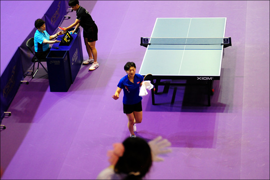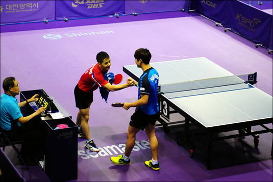 한밭체육관에 마련된 14개 테이블에서는 17일 오전 9시부터 하루 종일 남자단식, 여자단식 예선 경기가 이어졌다. 예선전에 참가한 선수들을 응원하기 위해 700여 석의 응원석이 가득 찼다.