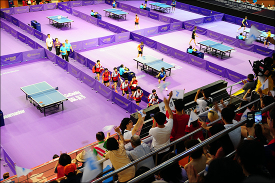 2018 코리아오픈 국제탁구대회가 열린 첫날, 한밭체육관은 무더운 더위만큼 선수들과 이들을 응원하는 시민들의 응원 열기로 후끈 달아올랐다.