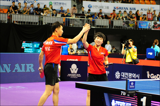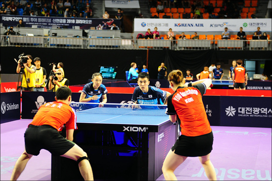 '2018코리아오픈 세계탁구대회'가 열리고 있는 19일 오전 대전 충무체육관에서는 남북단일팀 혼합복식조와 남한선수 혼합복식조가 경기를 펼쳐 응원하는 시민들의 난감한 상황이 발생했다. 그 어느 팀도 응원하기 어려웠던 것.