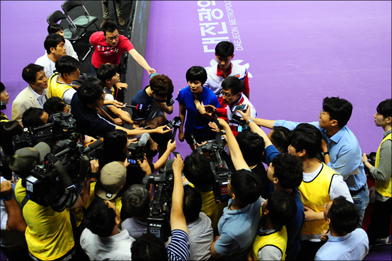 경기 후 김택수 남한팀 감독은 "장우진 선수가 초반에 긴장을 많이 해서 경기가 힘들었는데, 차효심 선수가 기장을 잘 풀어줘서 경기를 이길 수 있었다"고 말했다.