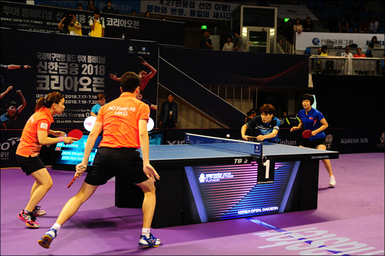 또 다른 테이블 대만과 중국 조가 맞붙은 경기에서는 풀세트까지 가는 접전 끝에 대만 조가 세트스코어 3대2로 승리해 단일팀과 결승진출을 놓고 다투게 됐다. 한국의 임종훈-양하은 조는 중국의 왕추친-순잉샤 조와 결승진출을 다툰다. 혼합복식 4강 경기는 20일 오후 12시에 열린다.