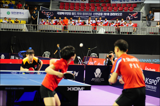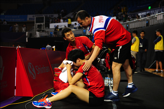 다만, 북한 박신혁-김남해 조는 선전을 펼치고도 마지막 세트에서 무너지며 4강 진출의 꿈을 접어야 했다. 이들은 중국의 왕추친(WANG Chuqin)-순잉샤(SUN Yingsha)조에 1세트를 21대 19로 내 준 뒤, 2-3세트를 잇따라 빼앗았으나 4-5세트를 내주면 결국 탈락했다. 1시간 가량 진행된 경기에서 안타깝게도 패한 북한팀의 김남해 선수는 경기가 끝나자 끝내 주저앉아 울어버렸다.