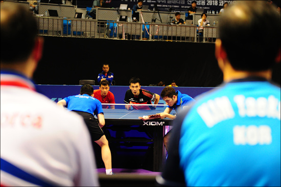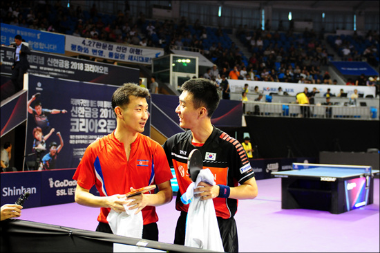 '2018코리아오픈 국제탁구대회'에 출전한 남자복식 남북 단일팀이 4강전에서 홍콩조에 패해 결승진출이 좌절됐다.