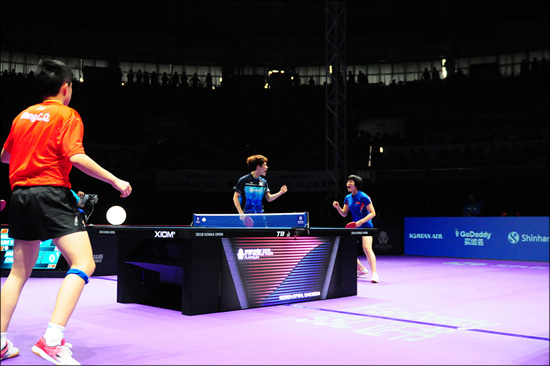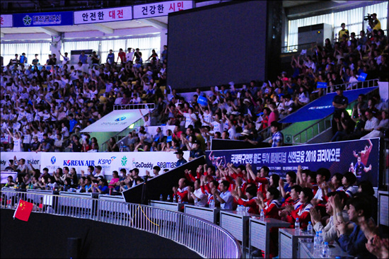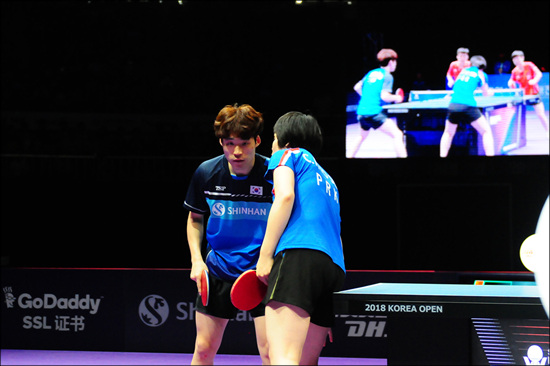 '2018코리아오픈 국제탁구대회'가 열리고 있는 대전 충무체육관이 떠나갈 듯한 함성으로 가득 찼다.