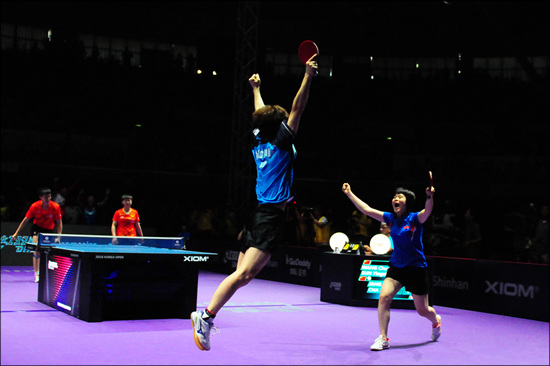 남자 복식의 이상수(남측)-박신혁(북측) 조, 여자 복식의 서효원(남측)-김송이(북측), 혼합복식의 장우진(남측)-차효심(북측), 유은총(남측)-박신혁(북측) 4팀이 남북 단일팀이었다. 혼합복식의 단일팀 장우진-차효심 조는 중국의 왕춘친-순잉샤 조를 세트스코어 3대 1로 꺾고 우승했다.