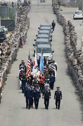 한국전쟁 당시 사망해 북측에 남겨진 미군 유해 55구가 27일 경기도 오산 공군기지에 도착했다. 정전협정 체결 65주년이 되는 날에 이뤄진 6.12 북.미정상회담 이후 첫 후속조치이다.