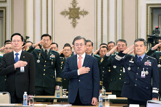 이와 관련, 문재인 대통령은 “한반도 평화를 위한 노력이 진행되고 있지만, 비전통적, 잠재적 위협이 커지고 있는 것이 현실”이라며 “남북관계가 개선되고, 한반도 비핵화 노력이 진행 중이지만 그 끝이 어딜지 여전히 불확실하다. 안보 환경의 변화에 유연하고 신축성 있게 대응할 수 있도록 군을 개혁해야 한다”고 당부했다.