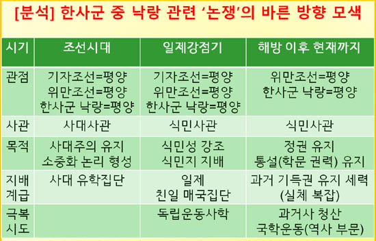 소중화(小中華)를 자처한 조선시대 학자들이 중국에서 건너온 기자로부터 우리 역사가 시작됐다는 점을 부각시키고 싶어했다는 것. 이에 더해 “일제는 조선 역사의 식민성을 부각시키기 위해, 현재의 평양에 낙랑을 반드시 위치시켜야 했다”고.