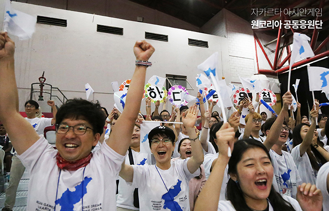 평창에 이어 자카르타까지. ‘통일응원’을 경험한 사람들은 이제 더 큰 꿈을 꾼다. “스포츠에서뿐만이 아니라 다른 영역에서도 단일팀이 이루어졌으면 좋겠다”는 것이다. 농구경기장에서 남북이 함께 외친 ‘단숨에’라는 구호처럼, 앞으로 스포츠를 넘어 민간교류의 장이 단숨에 열리는 날을 기대한다.