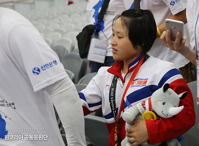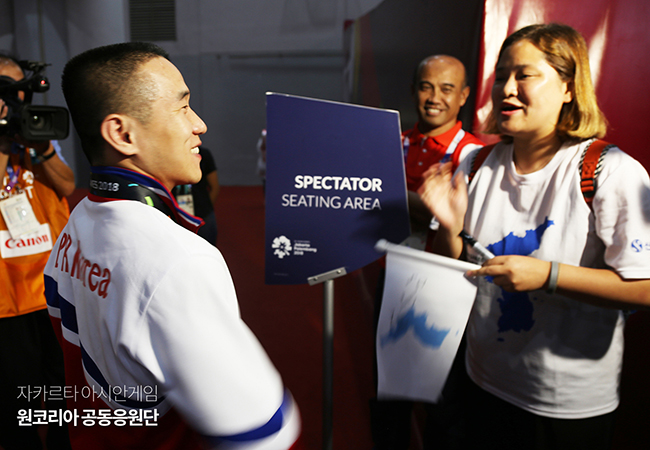 금메달의 기쁨과 함께 경기장은 더욱 화기애애해졌다. 북측 관계자들은 경기가 끝나고 응원단석에게 엄지를 치켜들고, 수고했다며 인사를 건넸다.