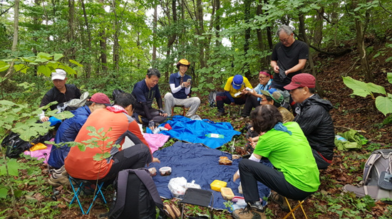 숲속은 시원할 정도로 청량하고 오르막과 내리막이 심하지 않아 가벼운 마음으로 숲길을 걷다가 맞춤한 안부에서 점심을 한다.